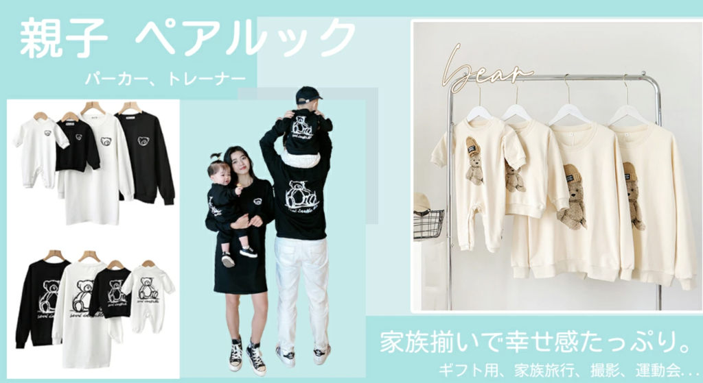 | おすすめポイント | ・カジュアルでコーデしやすいリンクファッションが豊富 ・サイズ展開が豊富なので幅広い年代性別でリンクコーデが楽しめる |