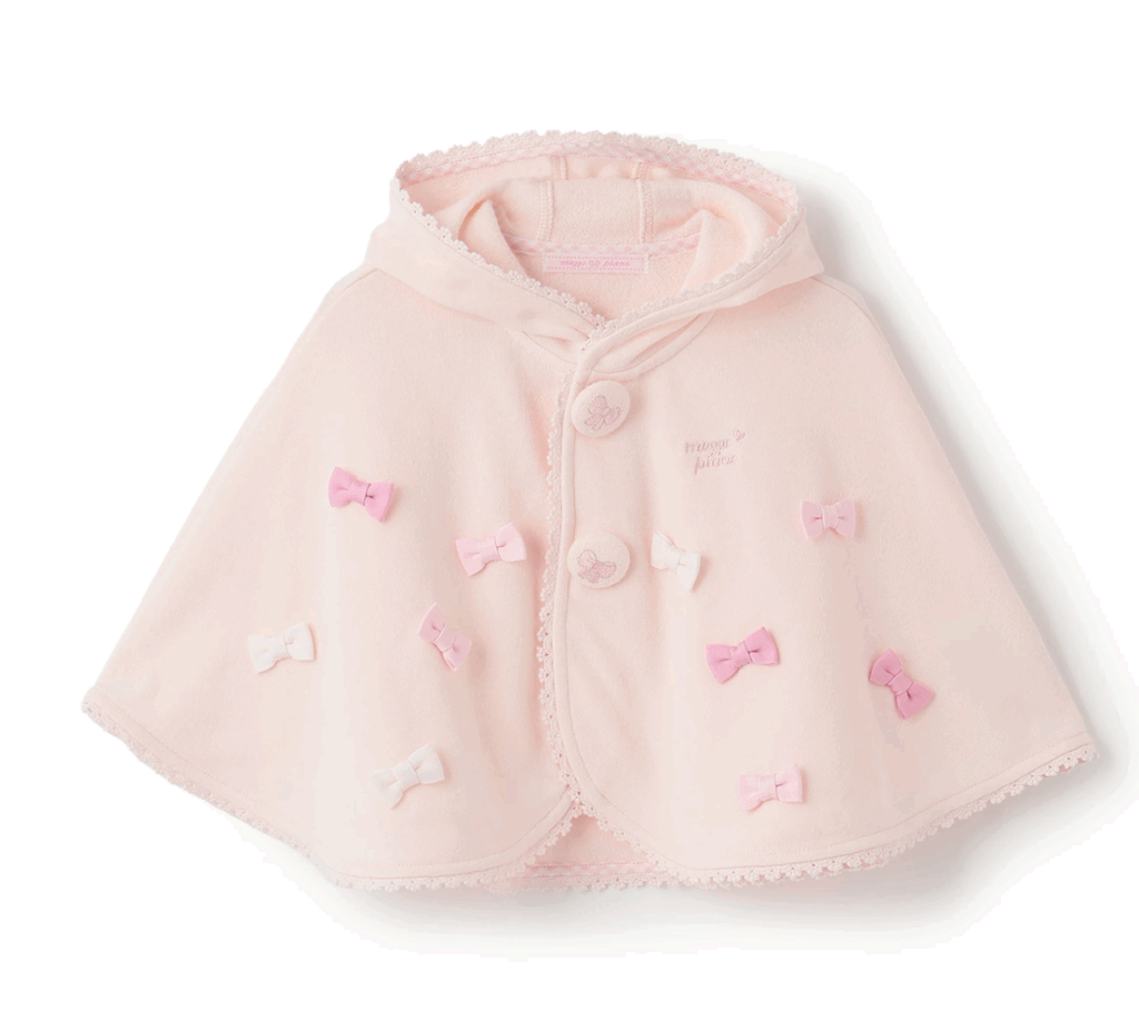 BEBEが運営するfillot de bebe reductionのベビーマントは、リバティ社のかわいい柄を使用したディテールまでこだわっています。リボンやファーフリースが可愛らしさをより高め、温かさと機能性も充実したアウターです。フードが取り外しができるので、シーンに合わせて使い分けられます。