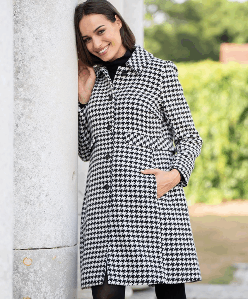 イギリスの人気ブランドセラフィン。Aラインがステキなデザインで産前産後だけでなく普通のコートとしても着たくなるおしゃれなデザイン。ウールミックスのやわらかい手触りで暖かく包み込んでくれます。お腹の上部分に切り替えが入ったペプラムなので可愛らしくトラッドな印象の千鳥格子デザイン。ダッカー付きのウールコートは珍しいのでチェックしてみましょう!