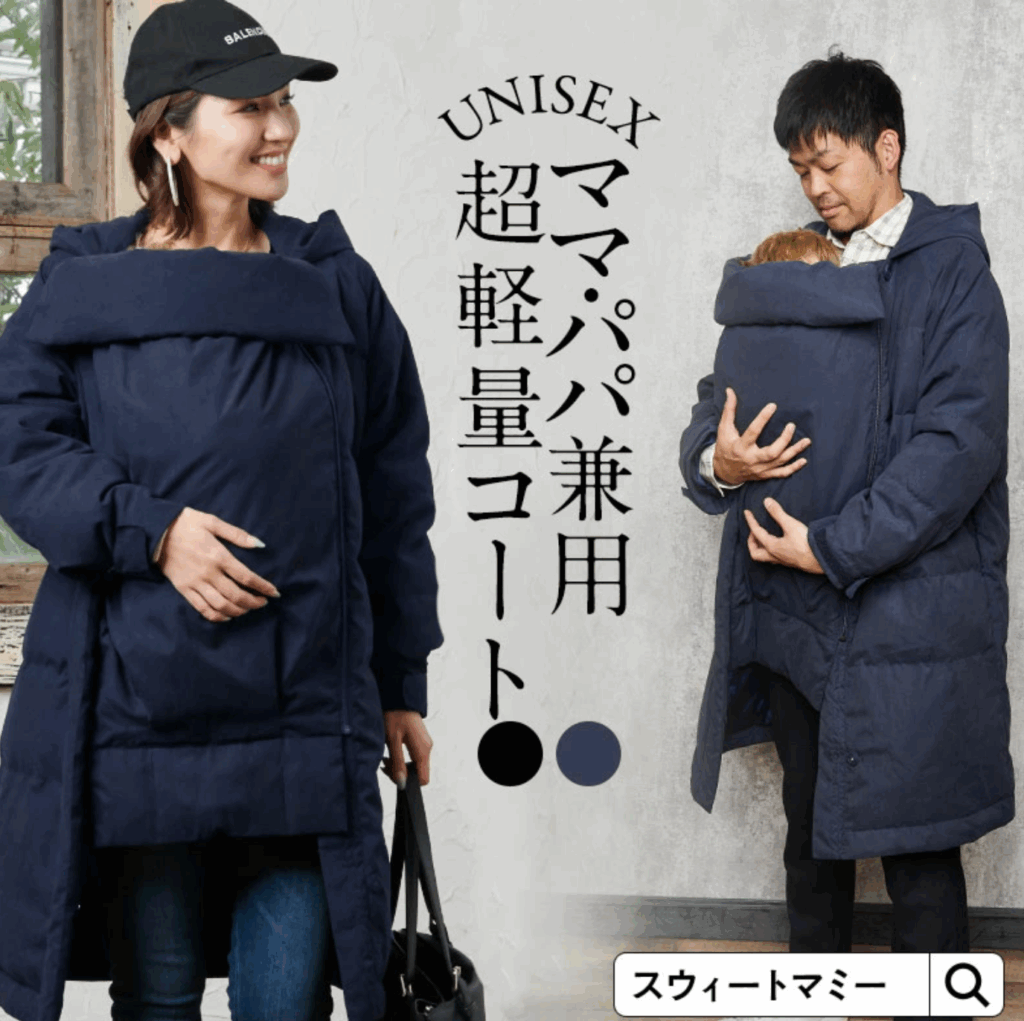パパが赤ちゃんを抱っこすると気にも使えるママパパ兼用超軽量コート。軽くて暖かい中綿を使用し、丈夫で撥水加工も施してあるので雨や汚れにも強くて安心。ユニセックスなデザインでパパも一緒にお出かけを楽しめますね。高見えなデザインでカジュアルスタイルやメンズライクなかっこいいコーデにもよく合います。