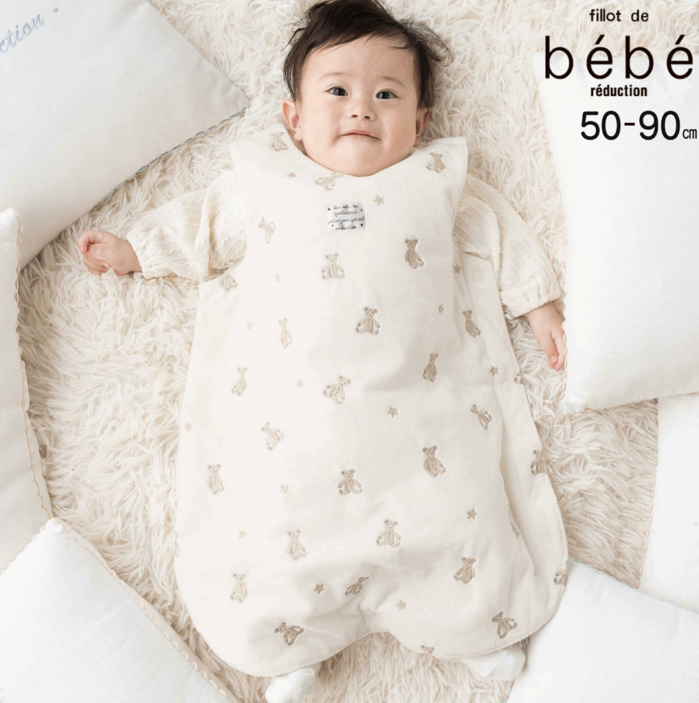 fillot de bebe reduction マイクロフリース クマ刺しゅう スリーパー