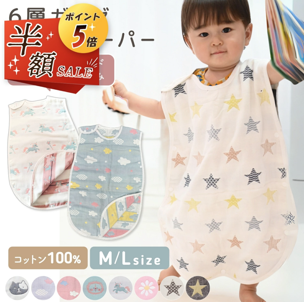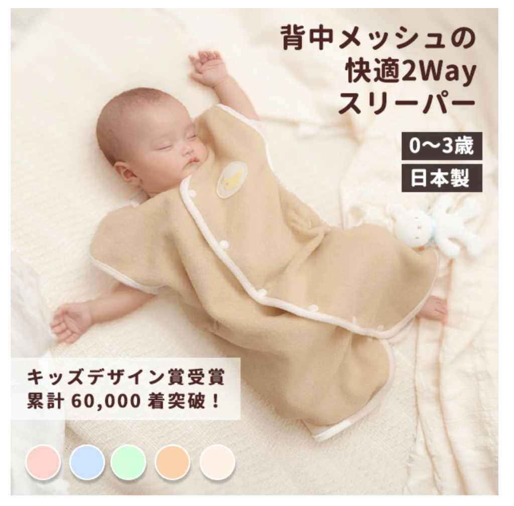また、スリーパーは新生児期から幼児まで長く使えるデザインが多く、1~2枚持っておくと長く使えて安心です。ガーゼ素材など素材によっては夏場のクーラー対策にもなりますので便利ですよ。