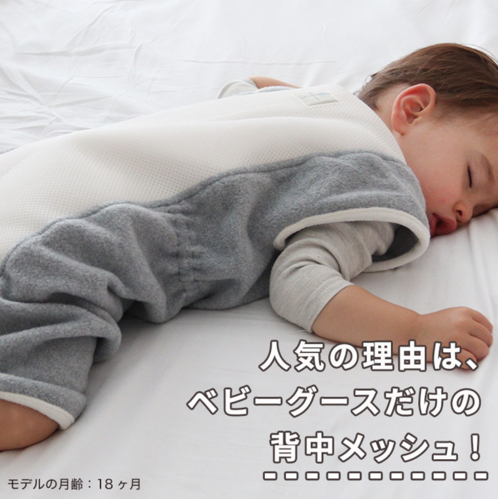 スリーパー専門店のベビーグース。こだわりの温かなスリーパーは、汗をかきやすい背中やお尻部分はメッシュになっているので、寝汗で冷えることなく安心です。0歳から3歳ごろまで形を変化させながら使えるのでコスパも良くておすすめです。